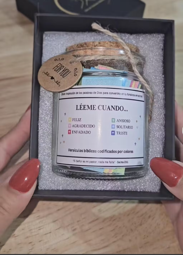 Con Frasco Sagrado no lo dudes: Versículos que llegan al corazón, presentación elegante y el regalo sentimental perfecto para tus seres queridos.